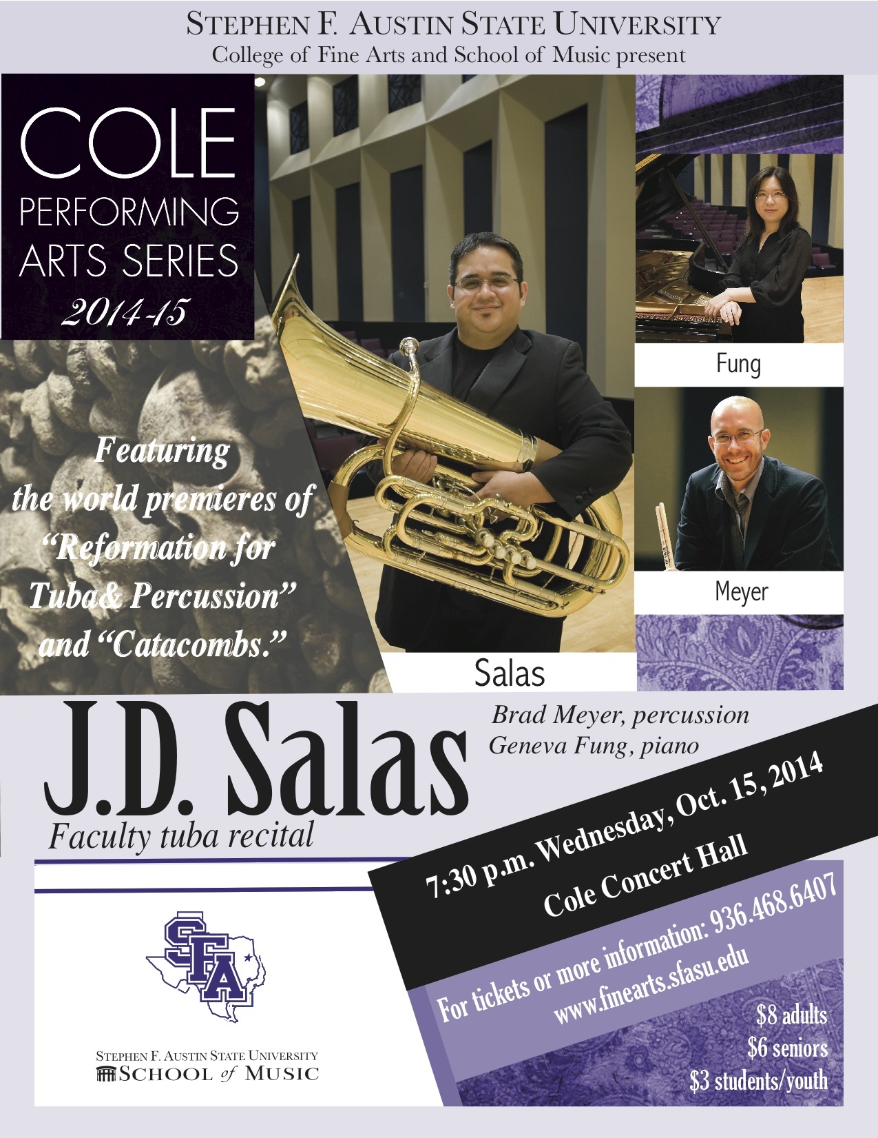 All clinics including the SFA Faculty Brass Performance are FREE OF CHARGE!! The 4 p.m. concert is free with pre-registration before October 28th (below). (Regular ticket prices are $8 for adults, $6 for seniors and $3 for students.)